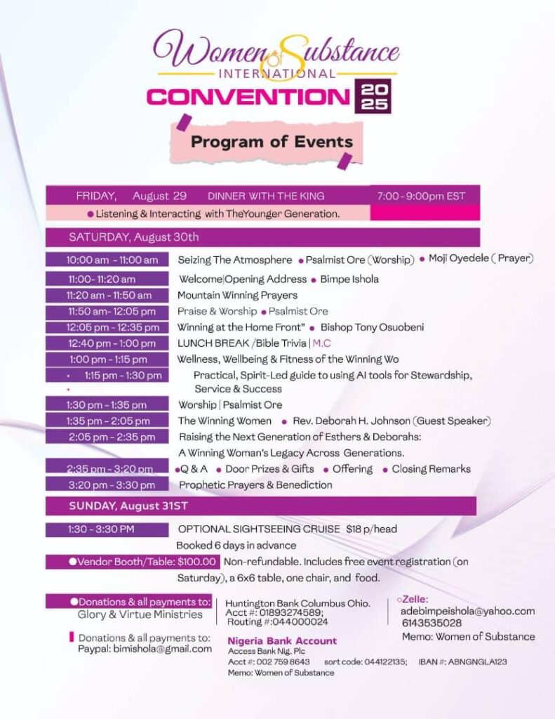 Uncategorized – Woman of Substance International https://iamawomanofsubstance.org Mon, 18 Aug 2025 16:42:39 +0000 en-US hourly 1 https://wordpress.org/?v=6.9.1 Women of Substance Conference 2025 https://iamawomanofsubstance.org/women-of-substance-conference-2025/ https://iamawomanofsubstance.org/women-of-substance-conference-2025/#comments Wed, 06 Aug 2025 09:55:49 +0000 https://iamawomanofsubstance.org/?p=590 It’s official!